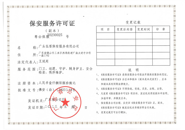 • 弘盾保安總公司營(yíng)業(yè)執(zhí)照
