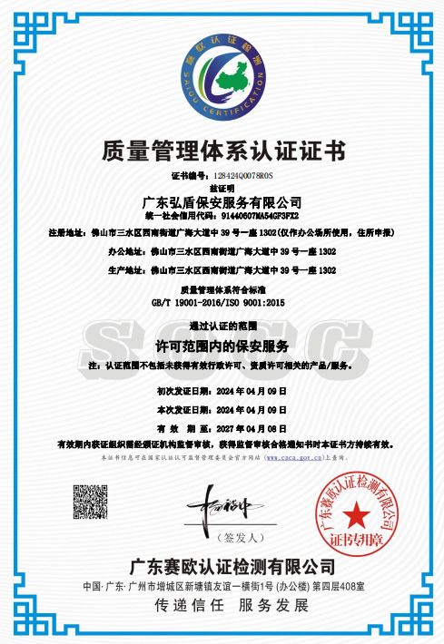 廣東弘盾保安服務(wù)有限公司東莞分公司是經(jīng)東莞市公安局嚴(yán)格審核,廣東省公安廳批準(zhǔn)頒發(fā)《保安服務(wù)許可證》,在東莞市工商行政管理機(jī)關(guān)登記注冊(cè)的,依法開展門衛(wèi)、巡邏守護(hù)、秩序維護(hù)、隨身護(hù)衛(wèi),安全檢查等綜合安保服務(wù)的專業(yè)保安服務(wù)公司... [詳細(xì)介紹]